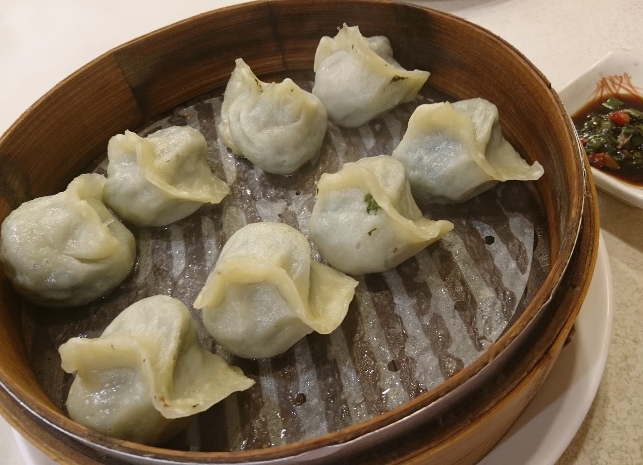 牛肉蒸餃有湯汁,皮有彈性,好吃;明蝦粉絲煲有五隻蝦,已開背還蠻好剝,粉絲量超多,兩個人吃不完呀~是適合多人用餐的地方。女性服務人員態度普通不致於態度差,但是一位收碗盤與放餐具的男性服務人員態度頗差,紙巾甩桌上,放茶杯極大力,收隔壁桌時還大力推椅子,本想多點些菜的,看到他這麼不悅的態度只想趕快吃吃離開這邊~餐點有4.5顆星水準,服務態度平均起來3顆星。