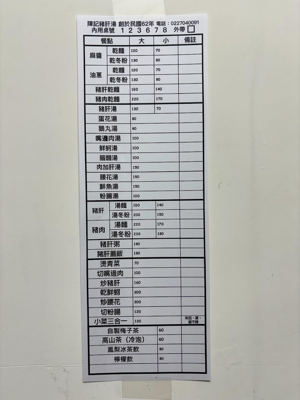 2024最新在地推薦餐廳的菜單_陳記豬肝湯(仁愛醫院豬肝湯)的菜單、圖片