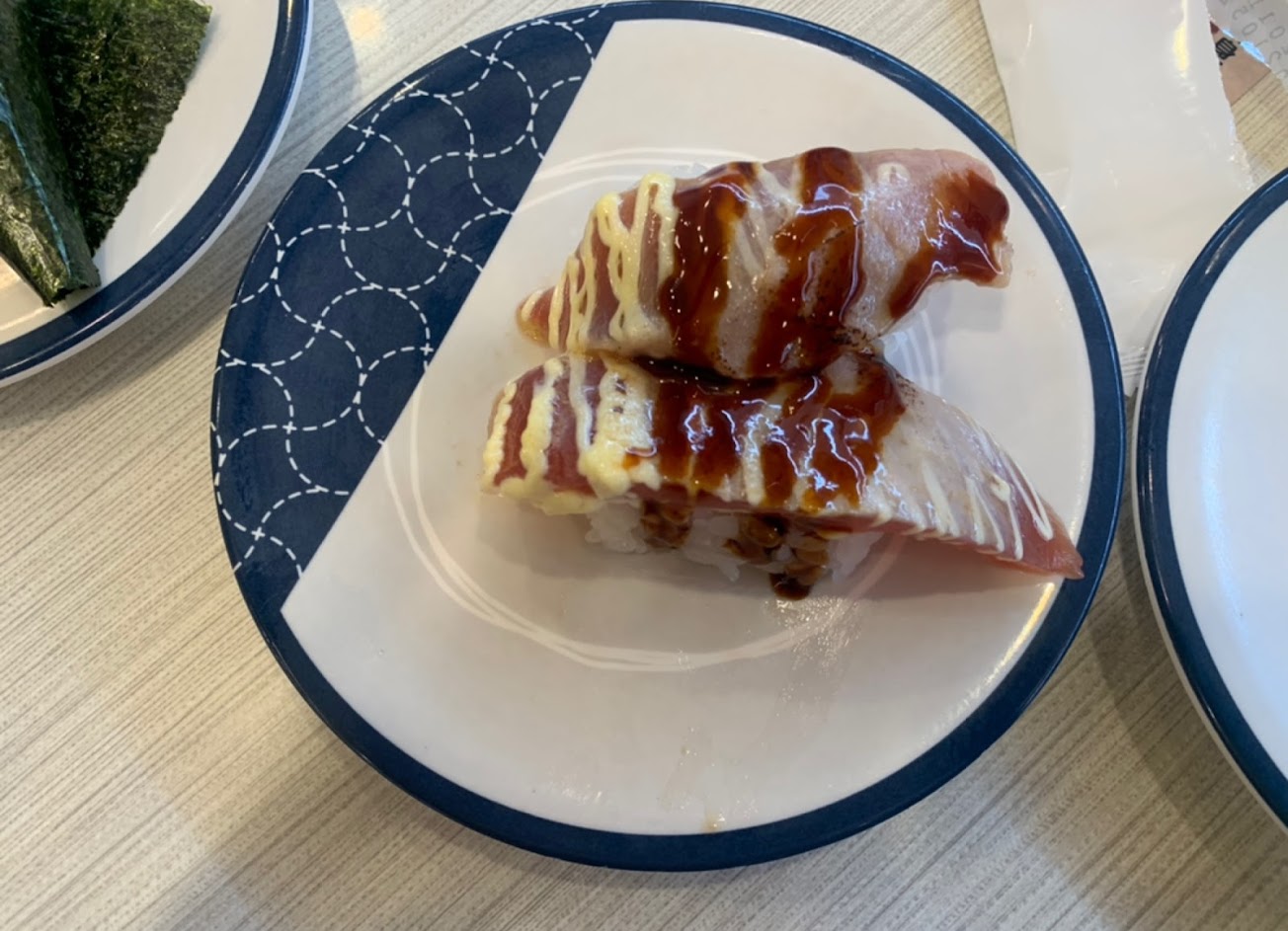 送上來的壽司盤也給人感覺像是沒清洗延續使用,都摸得出外盤粘膩。