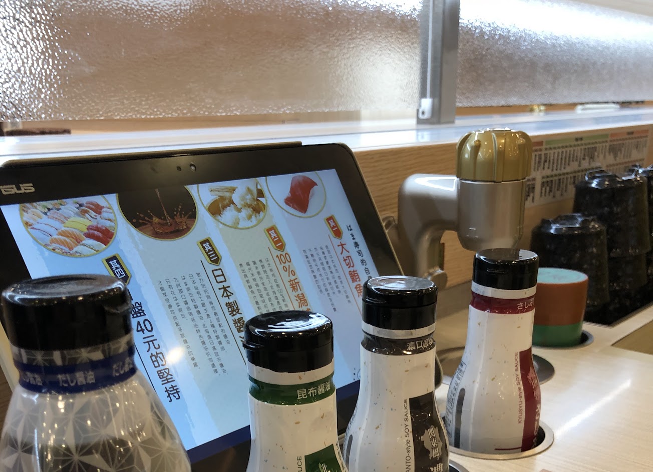 店內也提供4種醬油,要是吃的不那麼鹹,平板內也能選擇減鹽醬油~