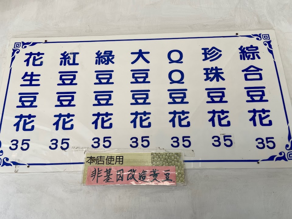 個人推薦綜合豆花,豆花口感綿密,配料有紅豆、綠豆、花豆、珍珠、QQ、花生等,真材實料。另外,冬天熱的可以加薑汁唷!