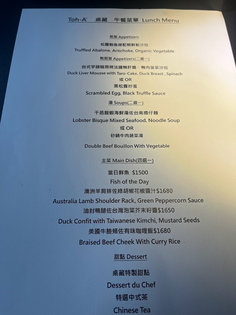 2024最新在地推薦餐廳的菜單_Toh-A 桌藏餐廳的菜單、圖片