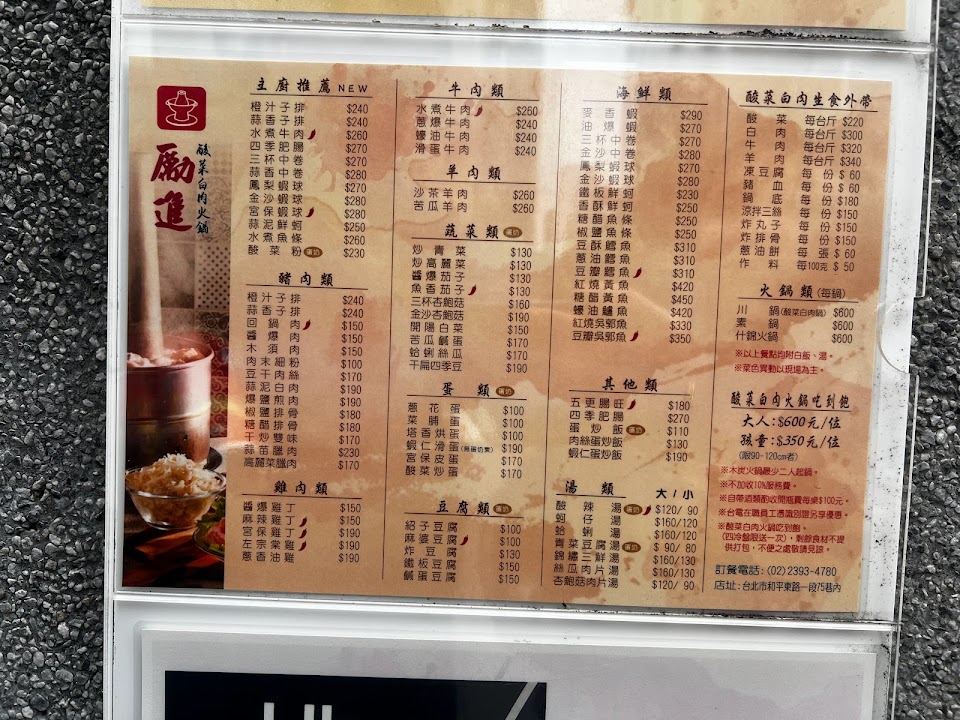 第一次吃聞名已久的勵進餐廳酸菜白肉鍋,排隊人潮多,服務人員每位都很熱情主動、告知食材如何吃。現在很少見到這麼熱情的服務了。