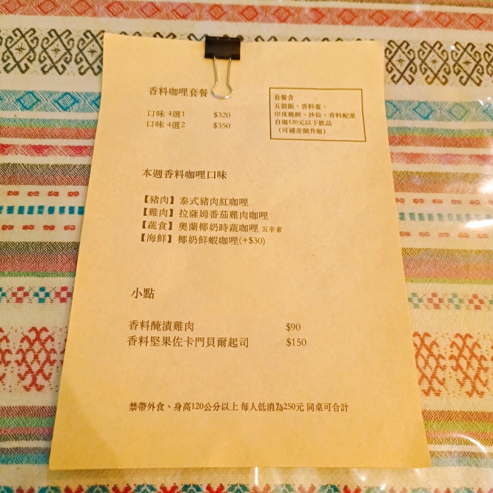 可以電話訂位、價位約在200~350元的餐廳,可以吃到印度香料所製作出的香料咖哩!風味特殊且很美味,隨餐附的沙拉和餅都很搭咖哩!
