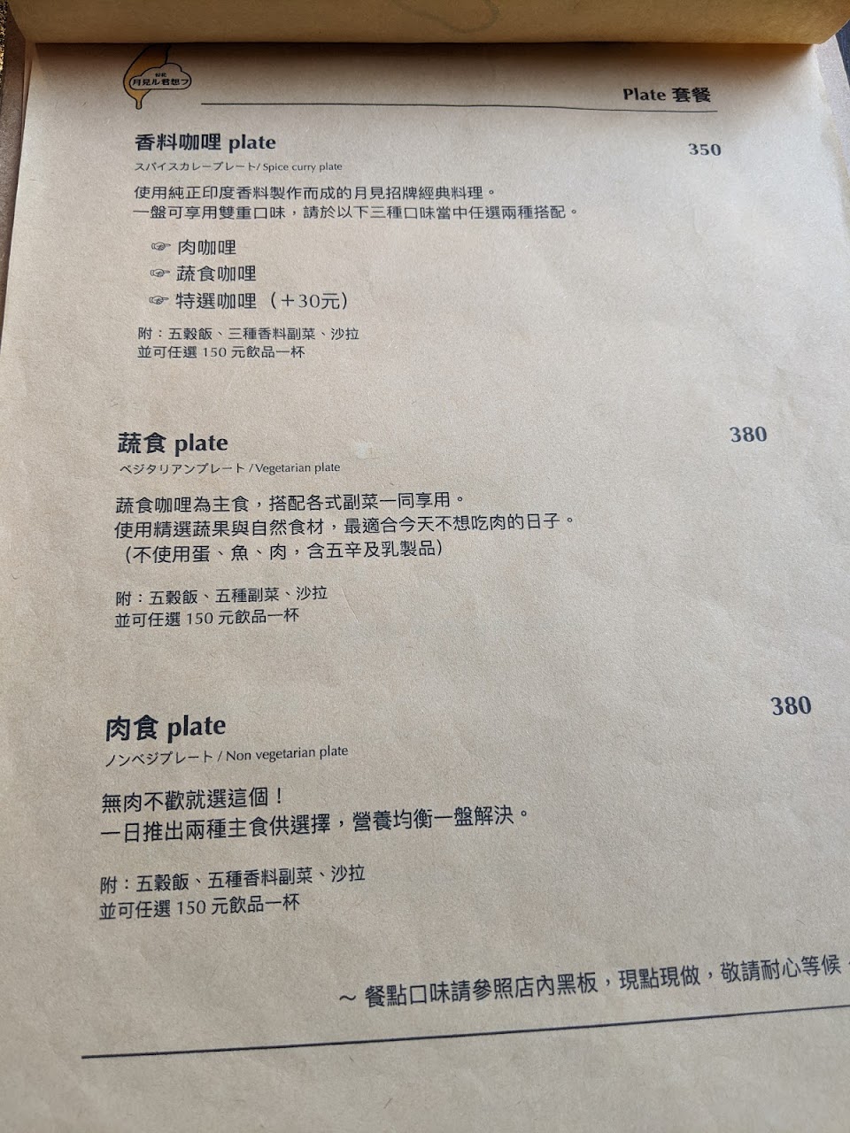 ? 咖哩可選擇單一口味(320元)或雙拼(350元),含 120 元內飲料。以普通女性食量,套餐份量已經非常非常飽足。