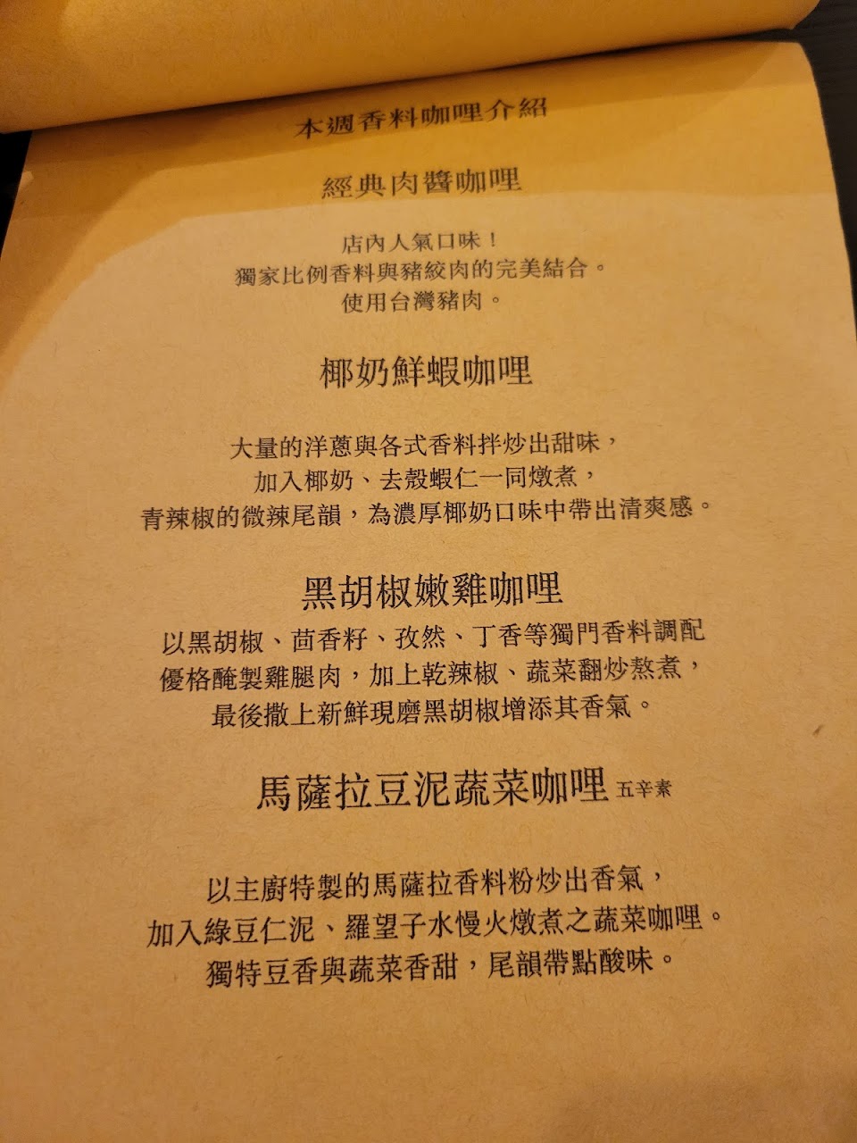 主打異國風味但咖喱口味算是調整過偏淡的,並不是印度餐廳那種重口味。有基本的香料感,但也不是日式甜口或辛口系咖喱。