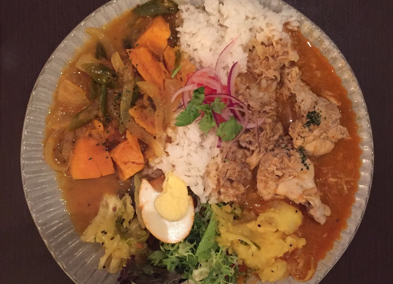 吃起來口感非常舒服的咖哩,蔬菜種類多,酒的種類也很多,舒適美味的店。
