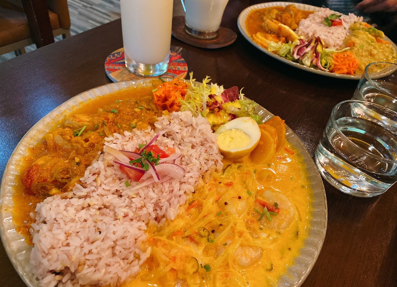 招牌是香料咖哩飯,一次可以選兩種口味,飯和配料也很用心,套餐包含$150的飲料。