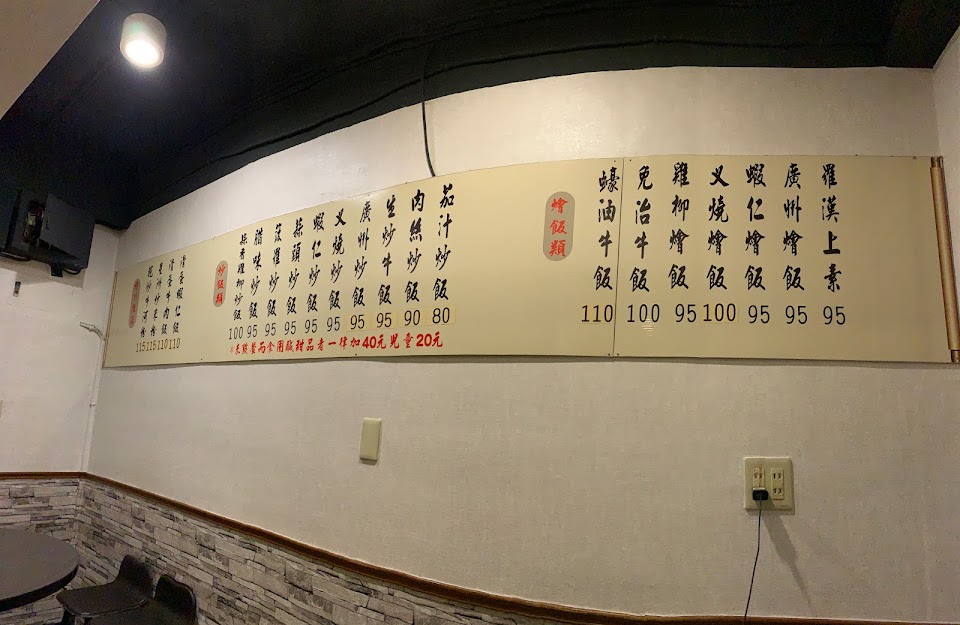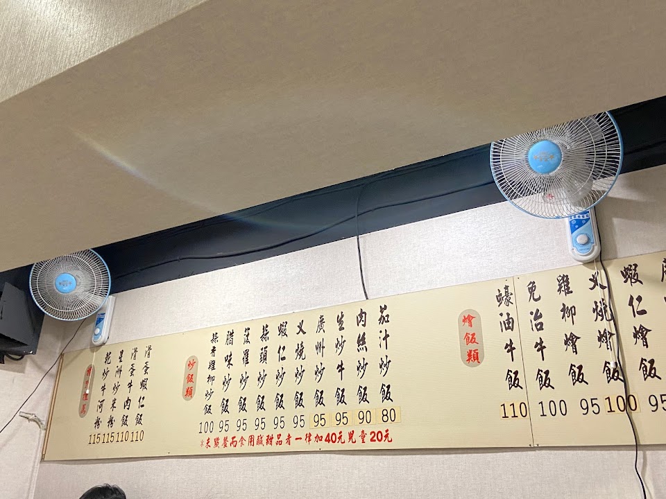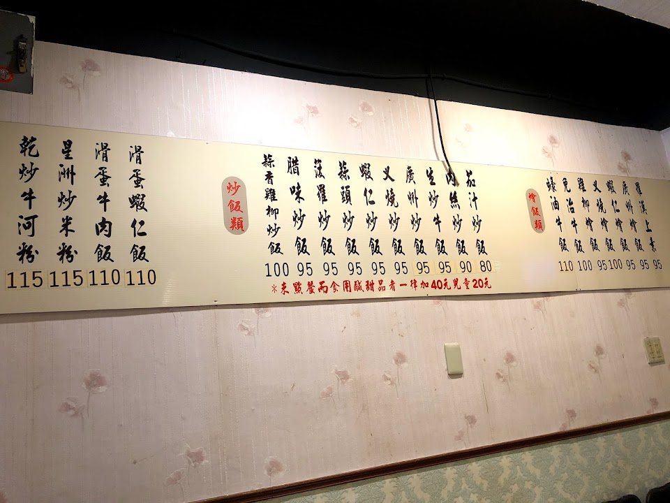 老闆是個非常專業,資深,仔細,並且堅持的食品者,以及溫暖食物的產製者。有一次看到老闆在看到一盤炒麵要出去的時候,那個盤子最邊邊有沾到一點點的醬汁,老闆立刻都很嚴厲的阻止小姐,要他把盤子邊邊擦到乾淨之後才可以再出去,我覺得這一個只是一盤100甚至只有90塊的炒飯或炒麵,老闆依然可以用如此嚴謹的心態,跟真的是職人的心態,去面對每一個出去的食物,那真的是讓我非常的佩服。我們家小孩最愛這裡的蝦仁炒飯,他們可以天天吃,粒粒分明,分量十足,廣東炒麵是我的最愛,麵脆,配料足。更別說這裏的湯,足足有五種,有甜的,有鹹的,免費飲用,這種霸氣,是我以前從未見過一個小餐館可以做到這樣子。