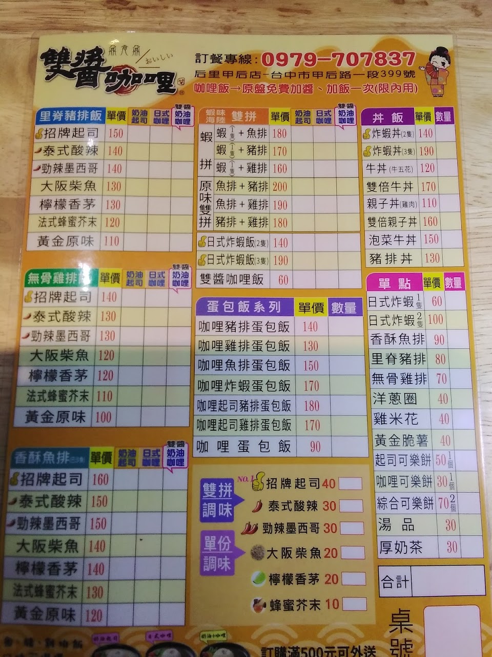 2024最新在地推薦餐廳的菜單_雙醬咖哩后里甲后店的菜單、圖片
