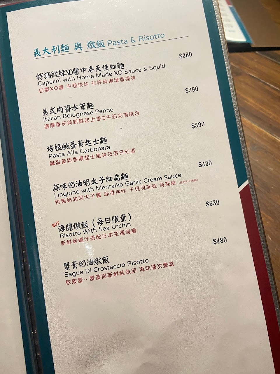 義大利麵&燉飯套餐 $600左右(主餐+$180為套餐,甜點另改選為派可折抵原價$30)