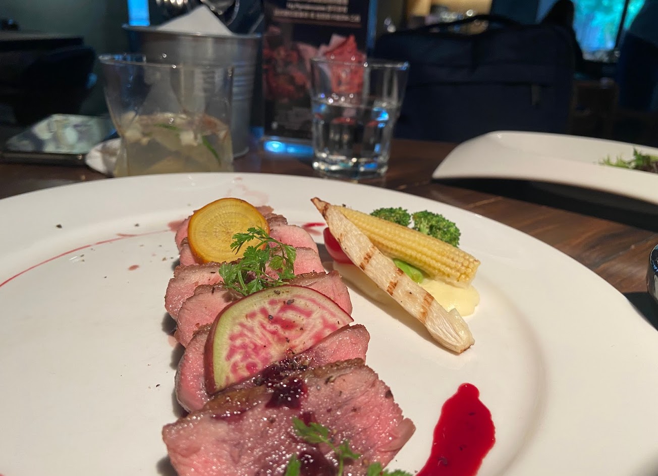 餐點非常好吃。推薦戰斧豬排、櫻桃鴨胸、水果千層、軟殼蟹沙拉。 ?軟殼蟹沙拉:是我心中的第一名,軟殼蟹搭配鳳梨水果跟鮭魚卵生菜一起吃,口感清爽,味道富有層次,會再因這道菜回訪❤️