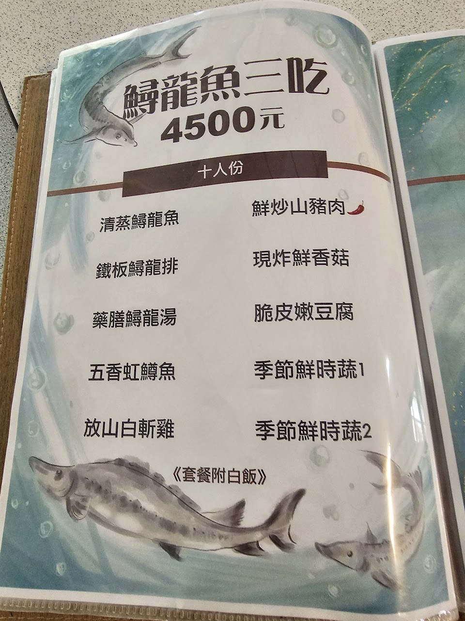 我們點了10人份的4500套餐,每樣菜都是驚喜,多吃的鱘龍魚料理,口感各有巧妙,炸豆腐真的好吃,唯一缺點是很燙?