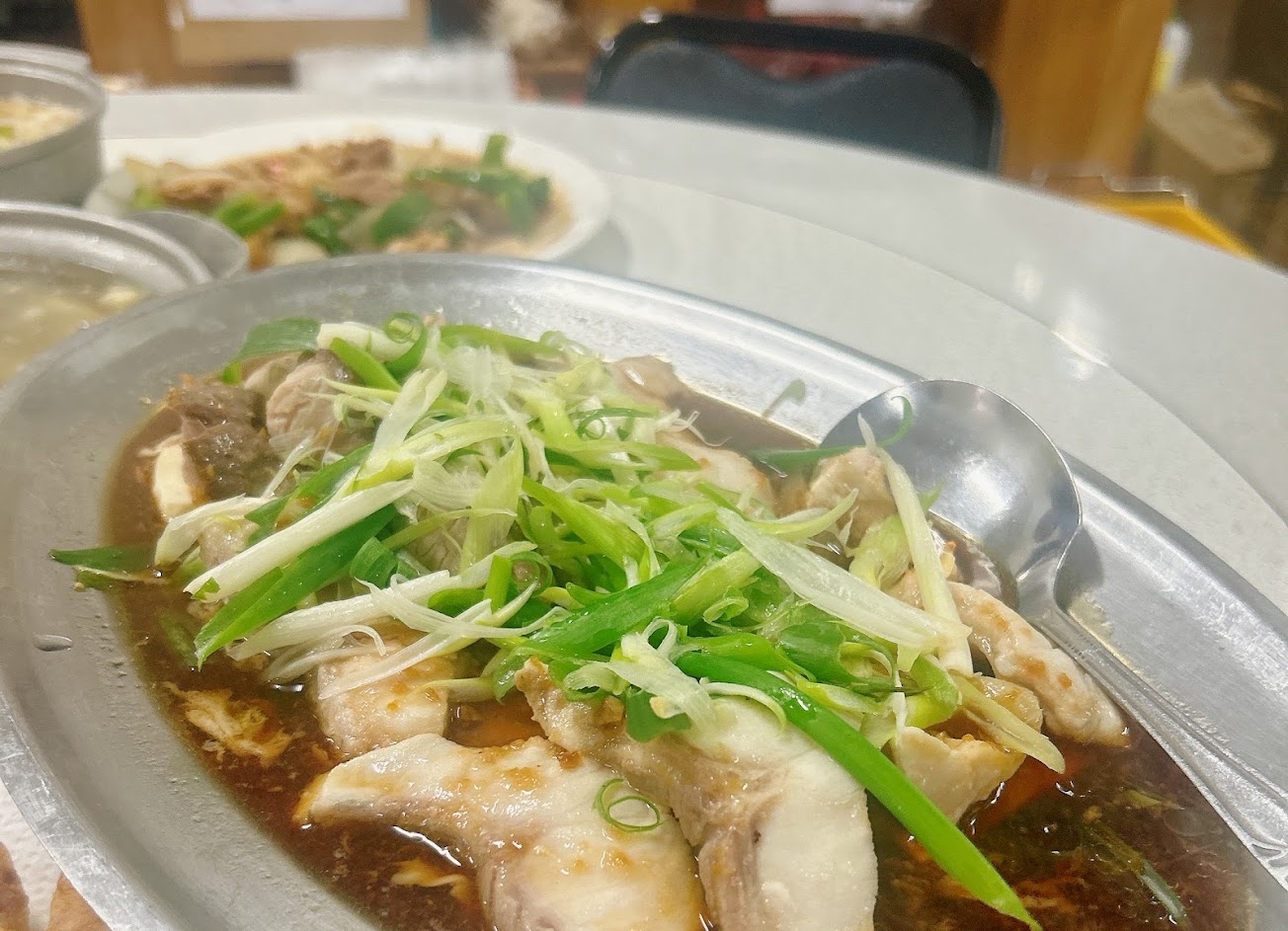 白斬雞的賣相和口感、像是冰了隔夜之久,清蒸鱘龍魚縮水很多,數量變少又變小。