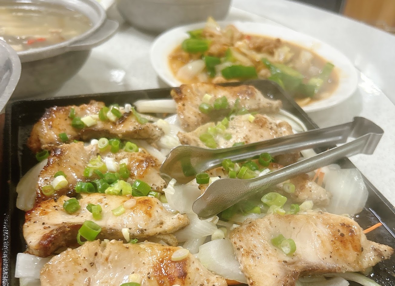 鐵板鱘魚排 鱘龍魚三明治 鱘龍魚粥 炸豆腐 放山白斬雞