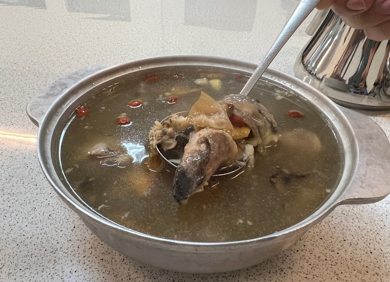 鱘龍魚藥膳湯主要是龍骨,沒有太多魚肉,膠質的口感很好,放涼請老闆娘重新加熱也沒問題,湯頭不錯,偏清淡,我下次可能會換吃麻油煲試試看。