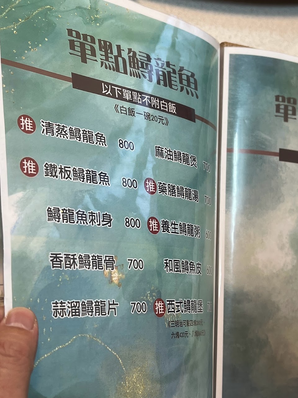 鐵板鱘魚排 鱘龍魚一條十吃 鱘龍魚刺身 鱘龍魚刺身 三明治 尋龍魚套餐 尋龍魚粥 鱘魚粥