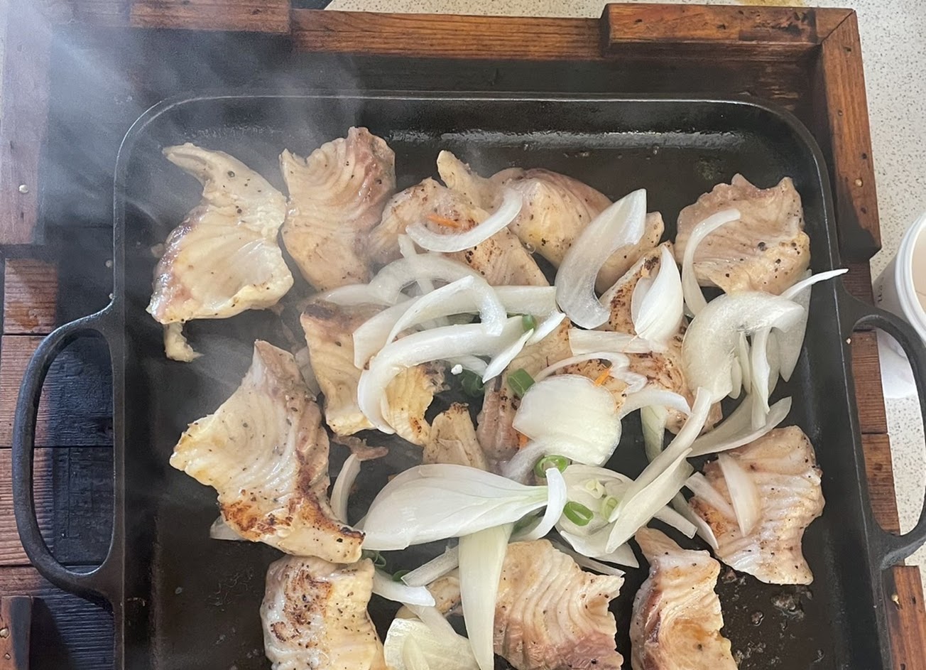 三人套餐的鱘龍魚料理好吃,鐵板鱒魚的魚刺多,小孩要小心。