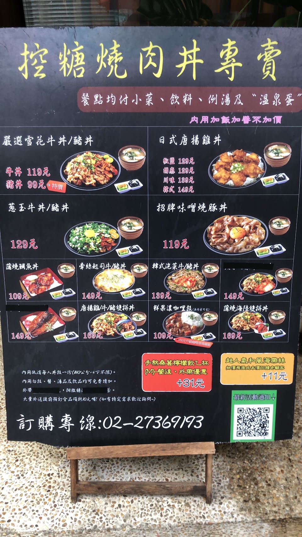 科技大樓站附近、台大118巷裡的店,位子大概20-30個左右,有點狹窄。單點牛雞雙拼丼飯 $179還不錯,肉量足夠,飯比較少(普通食量應該可接受,大食量的男生可能覺得少)湯跟飲料都無限自取供應,配菜比較隨意,高麗菜一點點,冬粉很糊。服務不錯,但上餐速度有點慢,可能因為現做吧。支援現金跟街口支付。