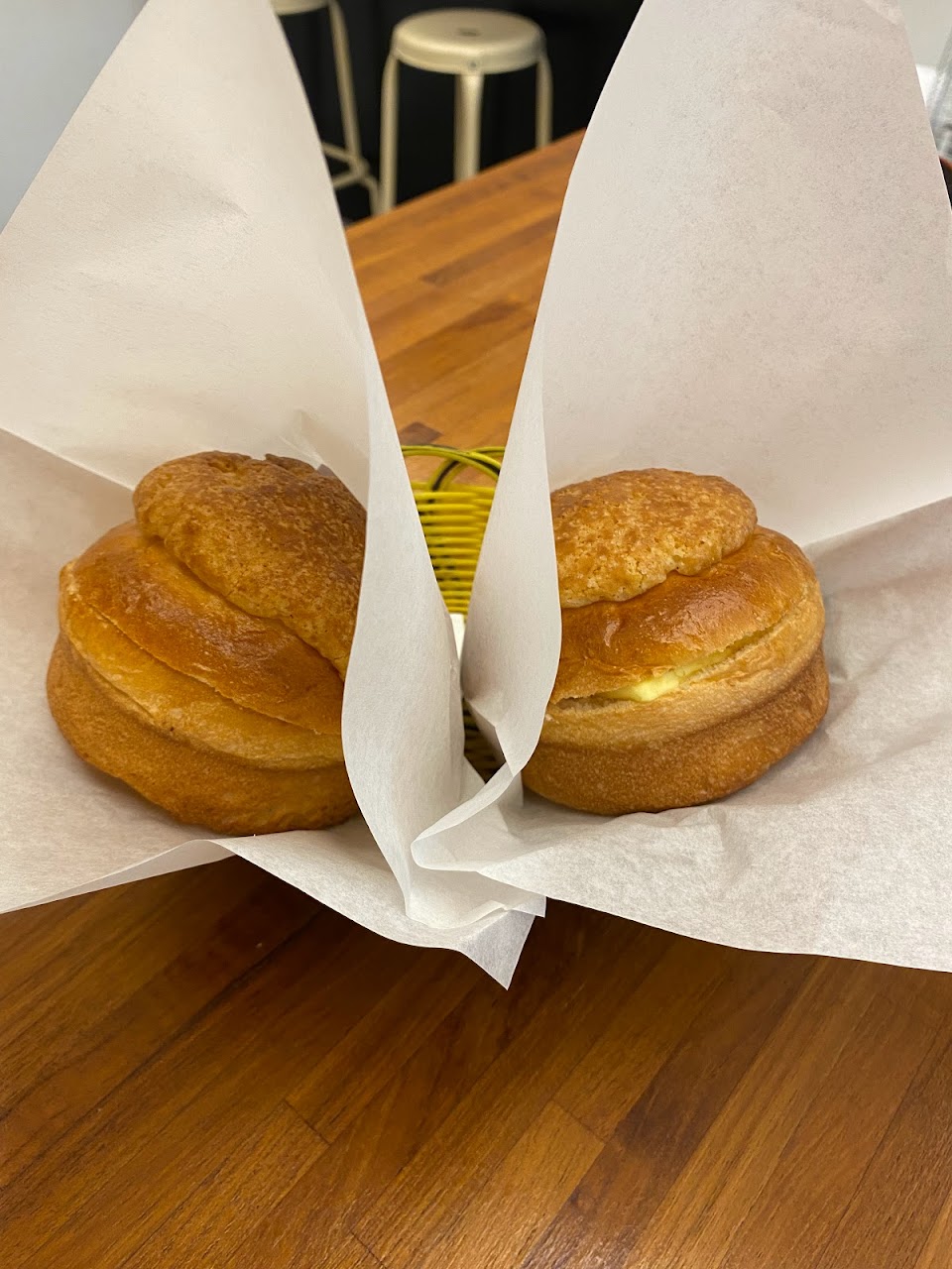 菠蘿ㄉ版本看起來麵包ㄉ份量很夠!而且麵包烤過熱騰騰的很香很酥