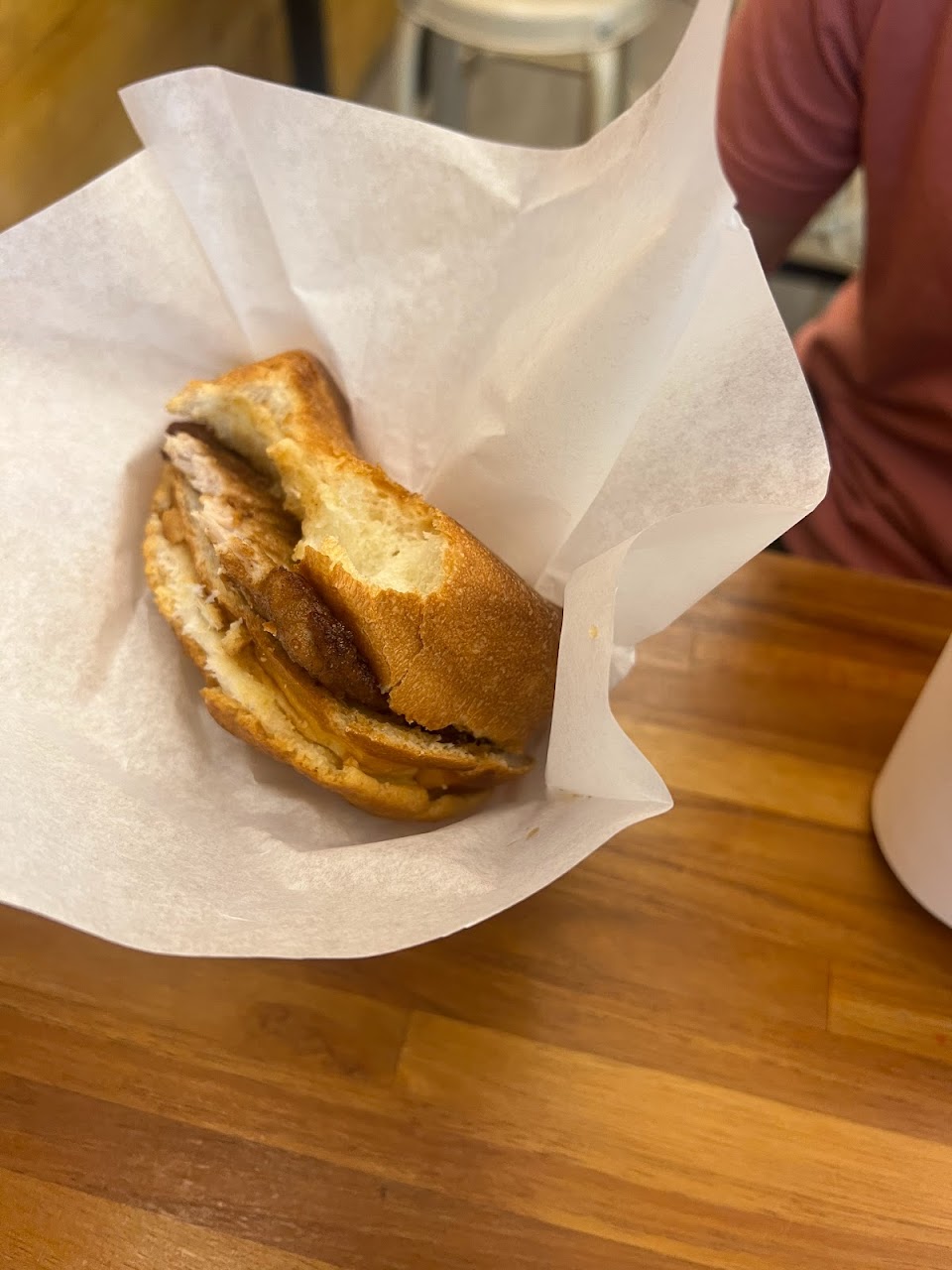 豬扒包超好吃,用料扎實,食材品質好,肉排醃得很入味,炸得酥脆卻不乾硬。