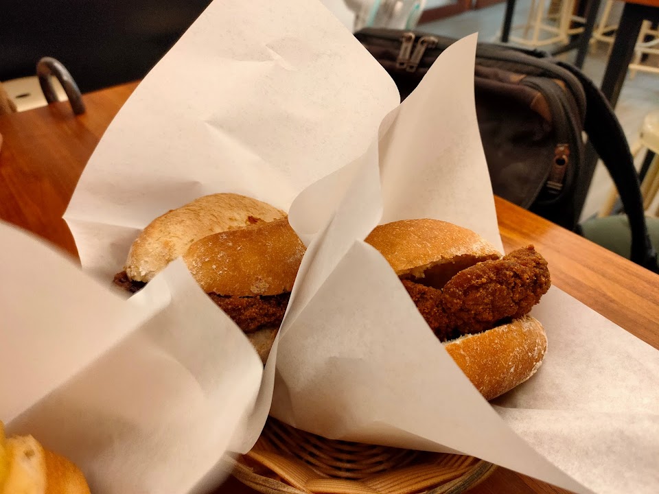 感覺得出來是非常用心在料理的好店! 豬扒包超好吃,用料扎實,食材品質好,肉排醃得很入味,炸得酥脆卻不乾硬。 現炸的排骨和現烤的麵包,記得一定要加辣牛油,超好吃,配上鹹檸七,一吃愛上! 店內乾淨明亮,座位舒適,一定會常來的好店!