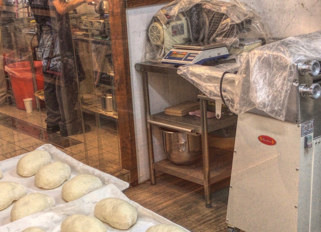 店家的麵包都是老師傅手工辛苦做出來的,透過透明玻璃讓我們清楚看到制作過程。