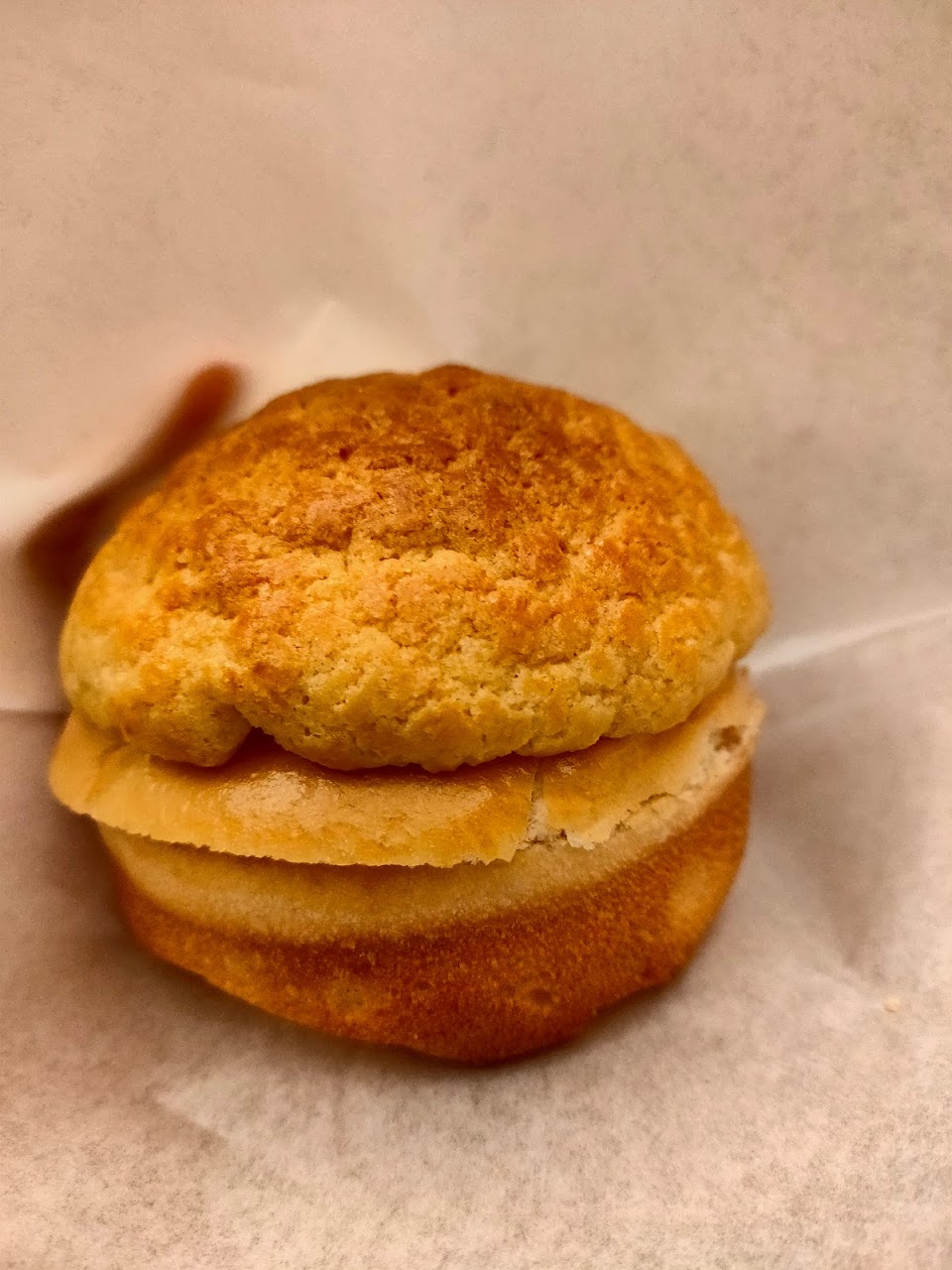 超讚,首先一定要誇的是麵包,真的是我吃過菠蘿油中最棒的!內餡不要看只是小小一塊冰奶油,滋味非常濃郁,搭配麵包上塗的一點黃油,鹹鹹甜甜的特別好吃,而且這個比例也沒有一般吃菠蘿油的膩口感,?!!