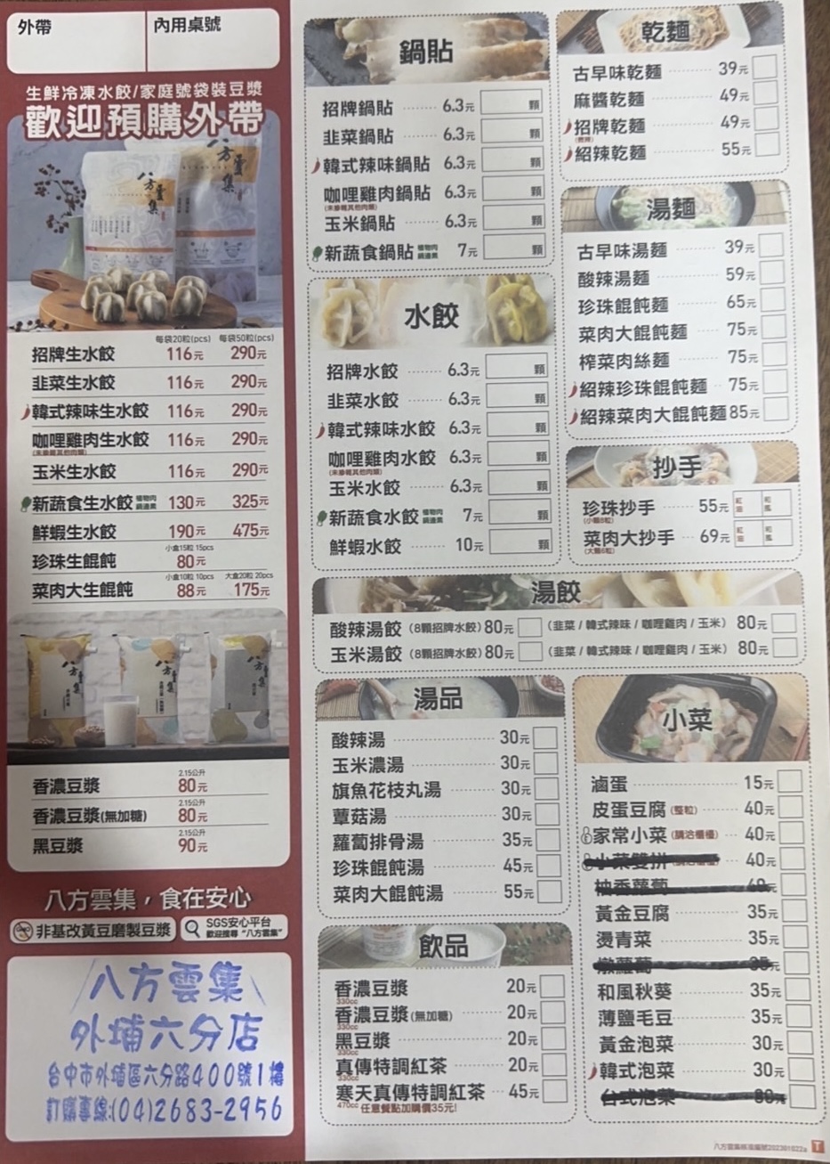 2024最新在地推薦餐廳的菜單_八方雲集 -六分店(外埔)的菜單、圖片