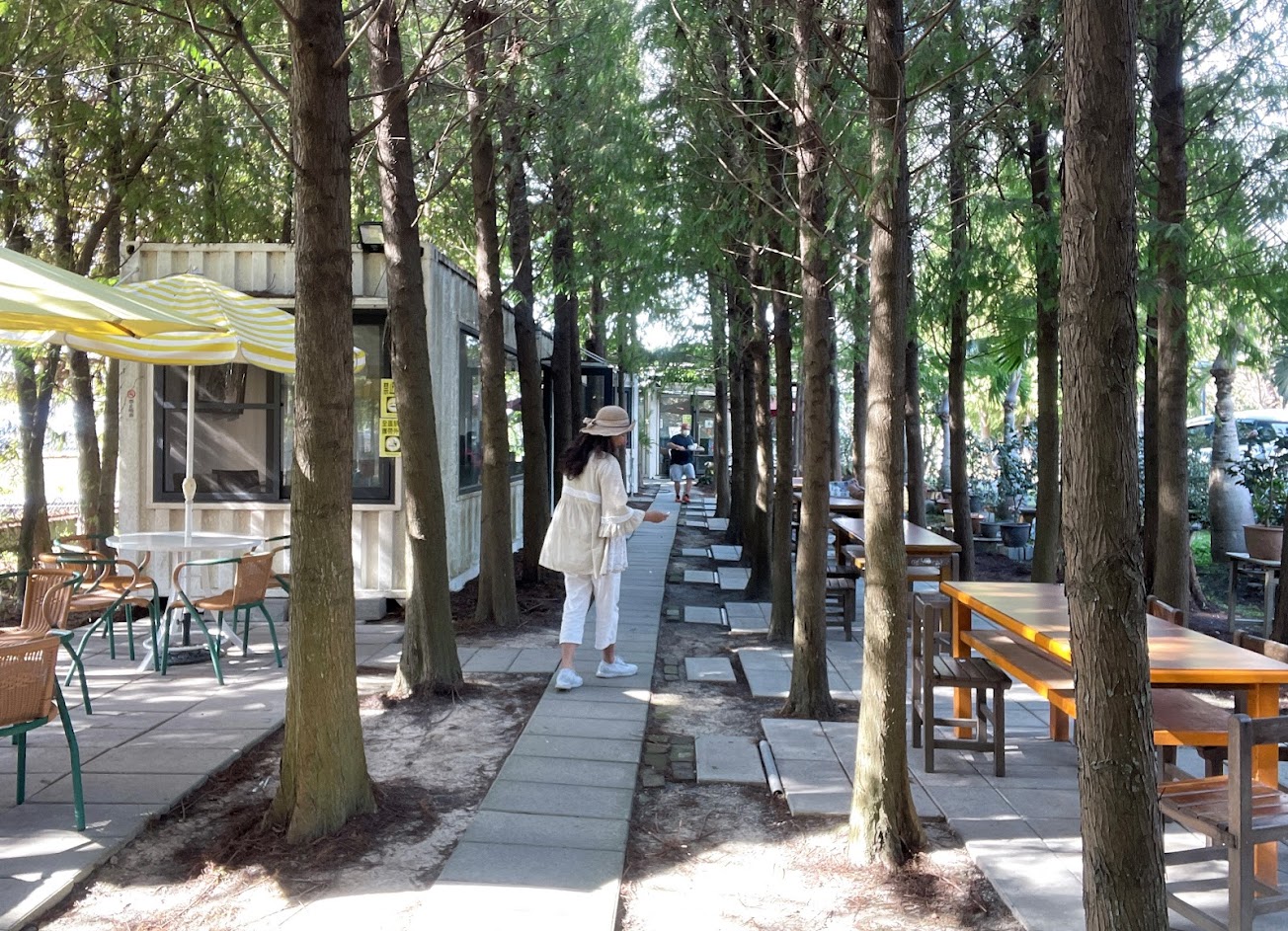 在這一片綠落羽松包圍下,享受著美味的吐司及咖啡,好一個愜意的下午,但坐在外面若怕蚊子可選擇貨櫃座位😋