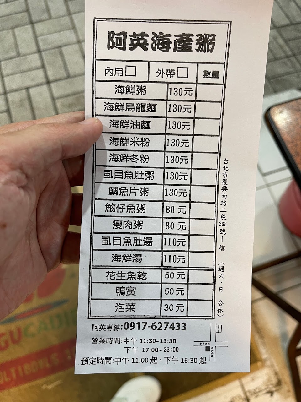在台北市是用料實在,且口味十足的海產粥,湯非常棒。