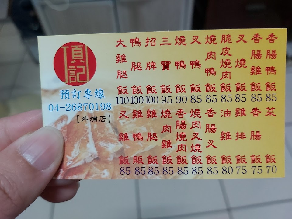 2024最新在地推薦餐廳的菜單_頂記港式燒臘便當快餐外埔店的菜單、圖片