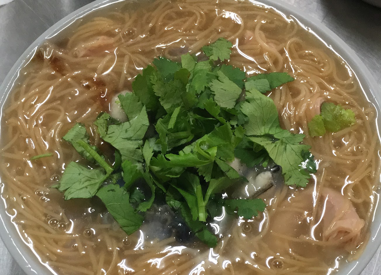 – 店員直接將混濁的麵湯加入麵線糊裡,導致蚵仔麵線過鹹。另外,手工的麵線毀在重複熬煮的不新鮮,麵縣的顏色不均勻,明顯是舊鍋倒入新麵線回鍋熬煮所致。