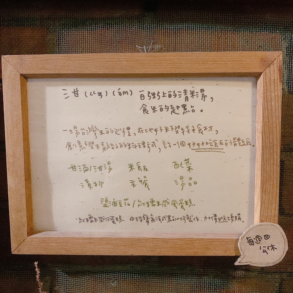 很細心很溫暖的地方,非常像日劇裡的深夜食堂,每一季都會換台灣不同的米,主打米食和米的相關料理,使用台灣在地食材,不只理念,味道都非常好呢