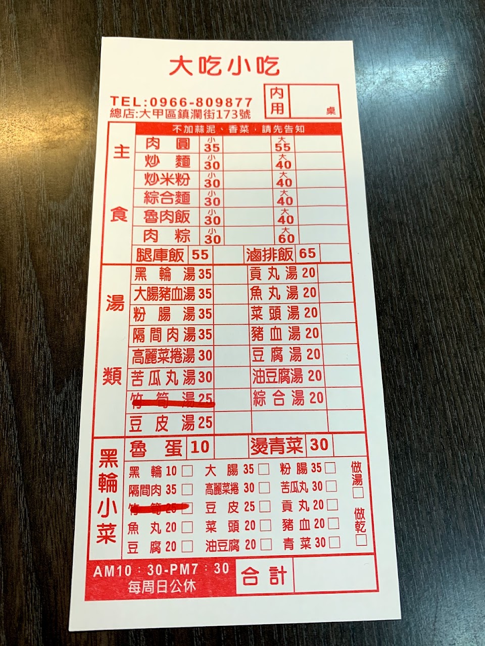 Restaurant served with delicious Taiwanese cuisine with affordable prices. The pig blood soup(豬血湯) and braised pork rice(魯肉飯) are recommended. Worth a try if you visit the Dajia Jenn Lann Temple(大甲鎮瀾宮).