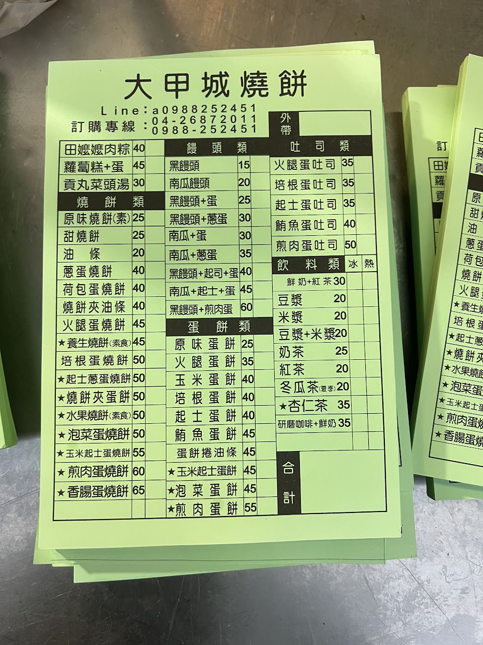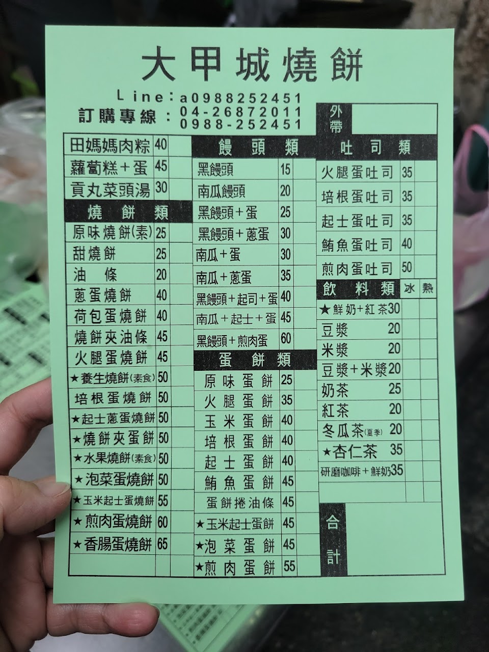 2024最新在地推薦餐廳的菜單_大甲城燒餅的菜單、圖片
