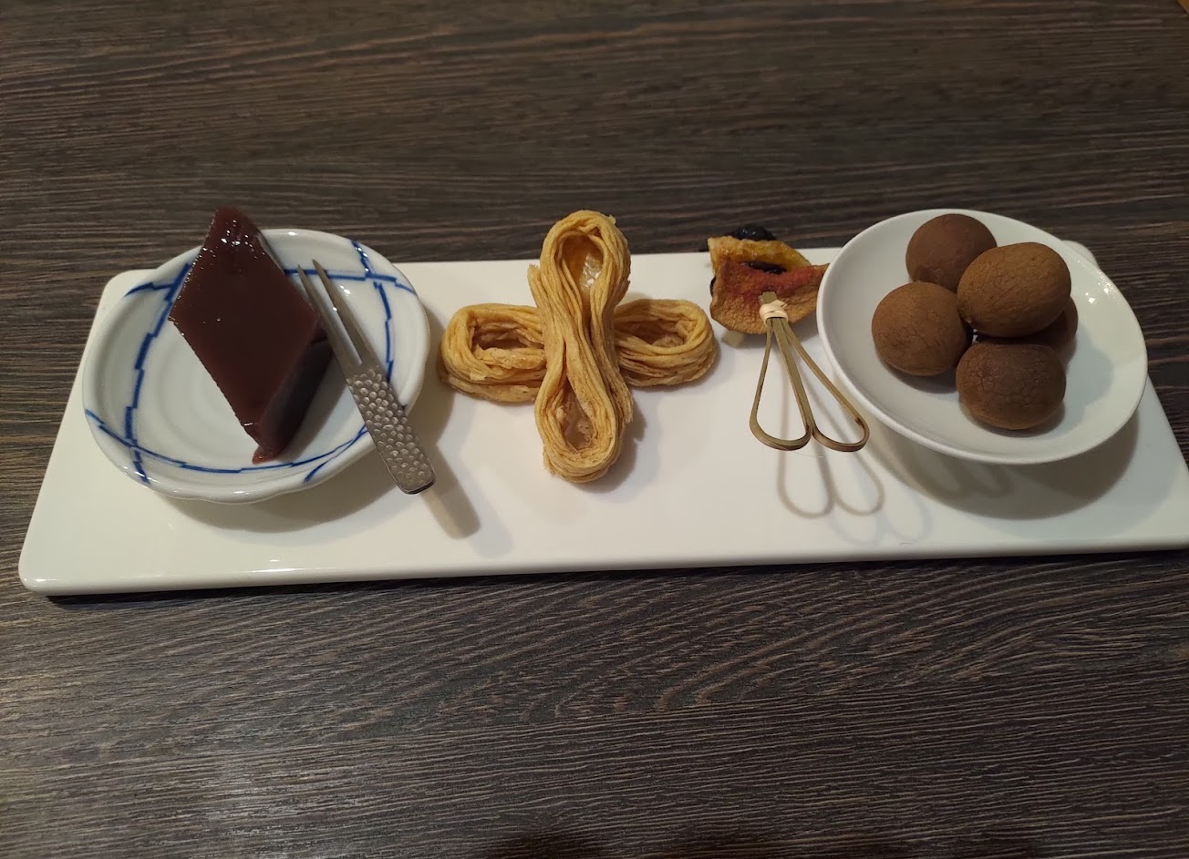 塘口飯需要電話預訂,這道聽起來很霸氣的餐點,實際上製作很精緻,口味清淡但吃得到食材原味,米飯煮得很好,粒粒分明軟Q度適中。我們又多點了一份下午茶,紅茶 + 茶點,用大碗泡茶,紅茶葉是完整的在水裡面舒展,再用銅勺舀到杯裡,很雅緻,桂花糕很不錯。