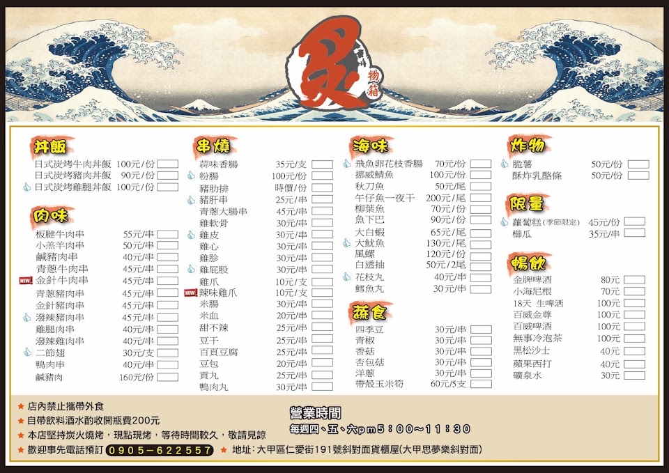 2024最新在地推薦餐廳的菜單_炙物箱炭火串燒的菜單、圖片