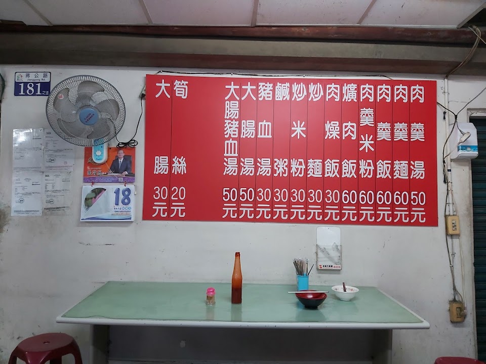 我買大腸豬血湯、肉燥飯,湯有夠腥的!肉燥飯還好!沒有特別好吃!