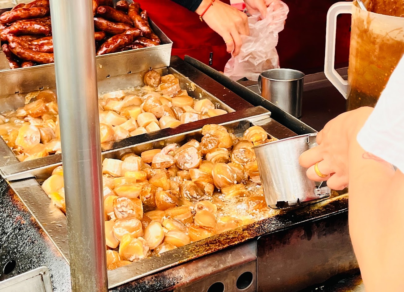 香腸普通,粉腸的醬料味道還不錯,小份的50元,吃起來的口感很像珍珠、很Q、很彈。