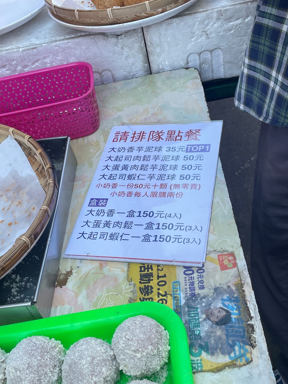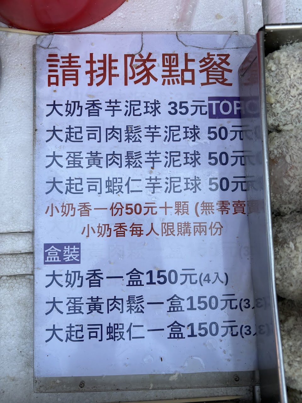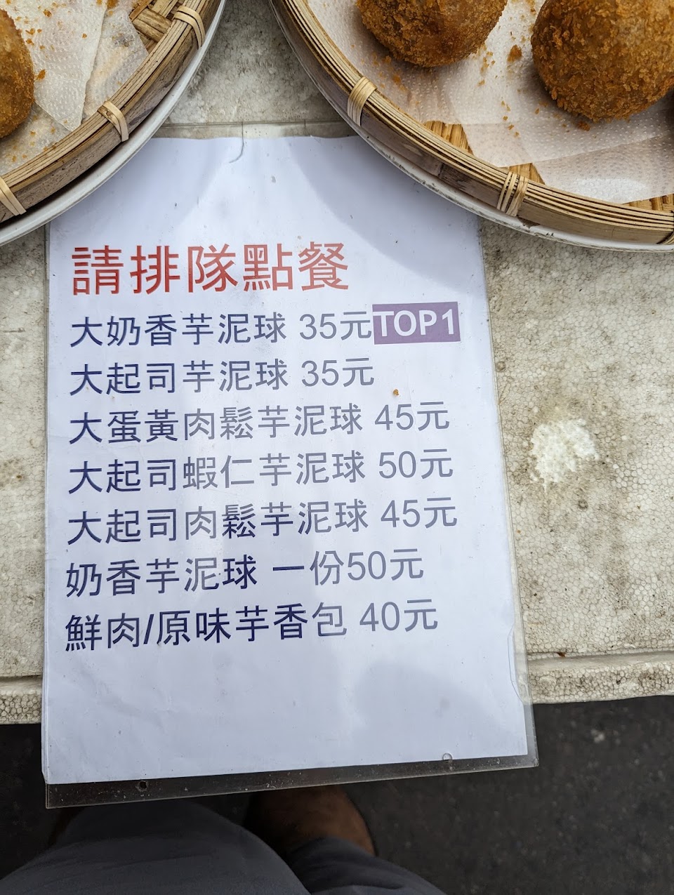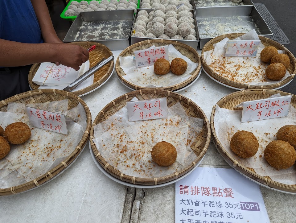 簡直是用了畢生的耐心在排隊!老闆超級忙,很多人一口氣買了十幾二十顆!但真的好好吃,沒吃過這麼有彈性的芋泥包,起司蝦仁超好吃!