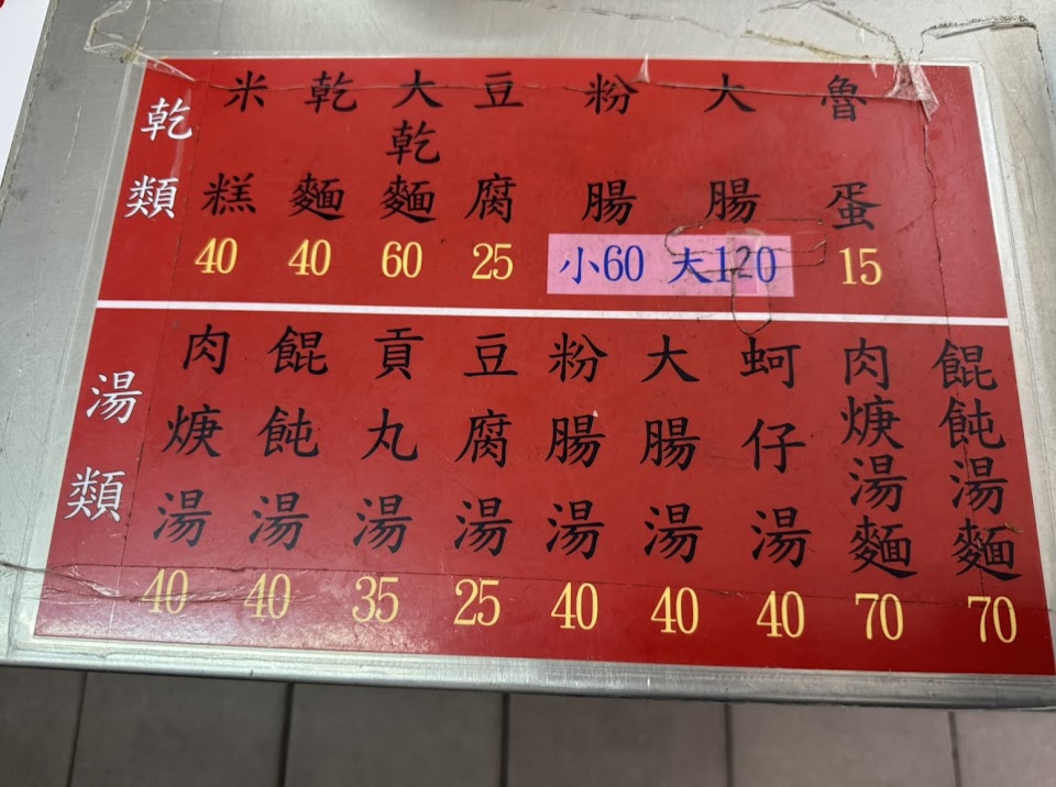 點了米糕,粉腸,大腸湯,味道不錯,好吃 唯一美中不足,我覺得份量真的少。? …