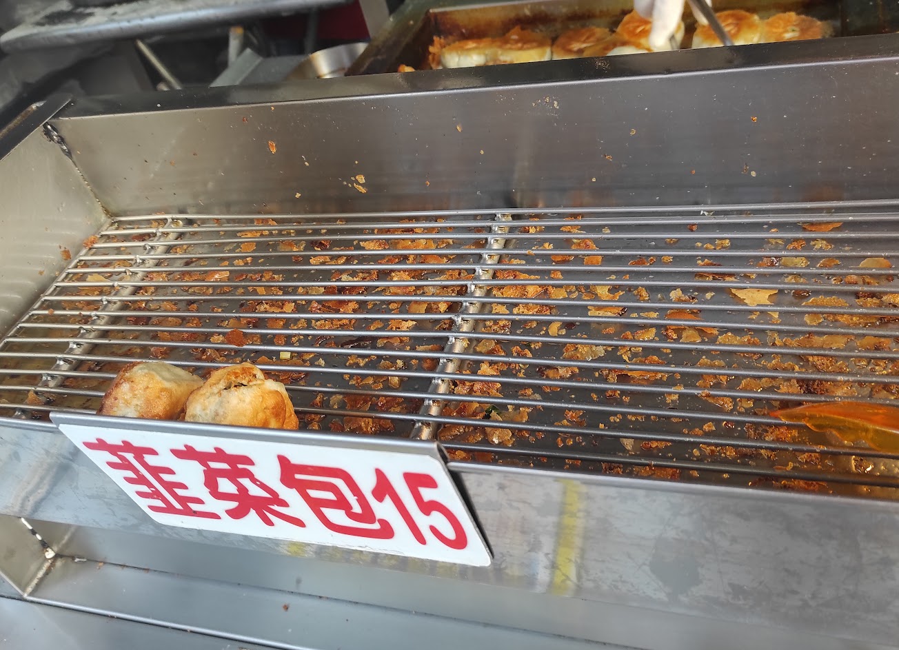 自己夾取需要的量,再給老闆算錢,外皮有麵香,內餡也很不錯,連平常不愛吃這類食物的女兒都意猶未盡,推薦豬肉餡餅,但平常只有水煎包,要等中午12點過後才有韭菜包跟餡餅