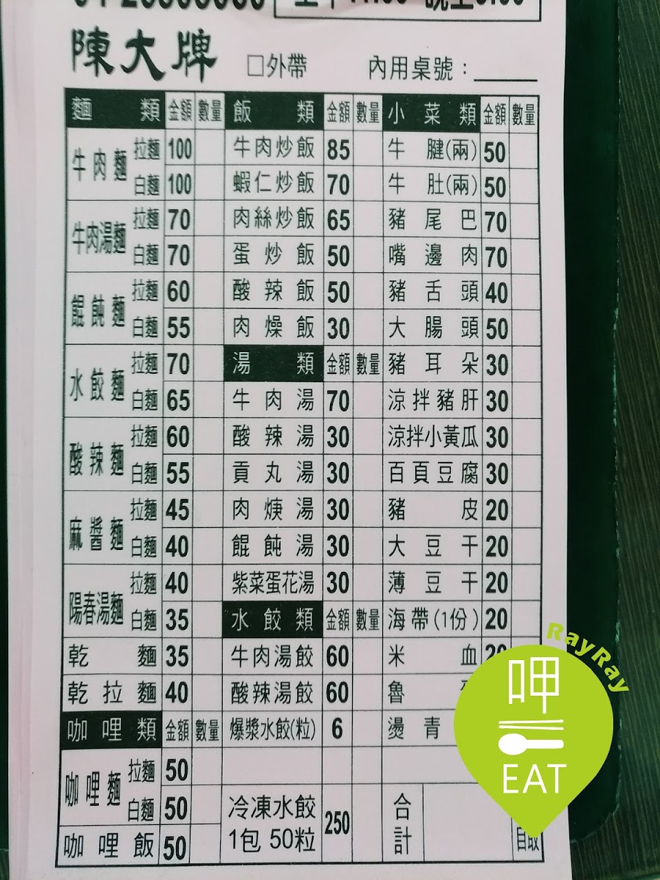 2024最新在地推薦餐廳的菜單_陳大牌牛肉拉麵的菜單、圖片