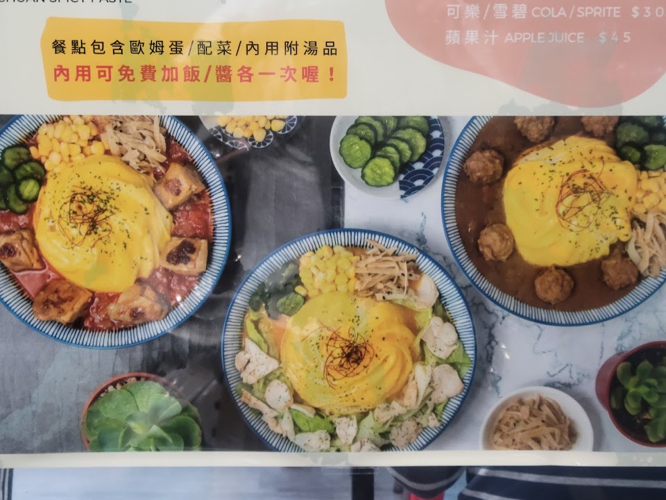 雞肉超嫩鮮甜,歐姆蛋滑順好吃,如果敢吃辣的推薦川味麻辣,不會太辣是好吃的辣的感覺,而肉球很有瑞典肉丸的滋味,還有附上一杯紫菜湯,唯一小可惜店內較少,只不過地段人潮沒那麼多應該不成問題。