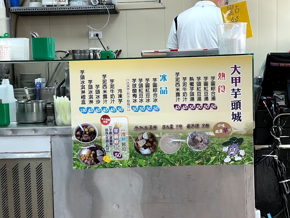 芋頭控必吃!來到大甲一定不能錯過這間大甲芋頭城,主打芋頭冰品系列,芋圓綜合冰是人氣必點招牌。