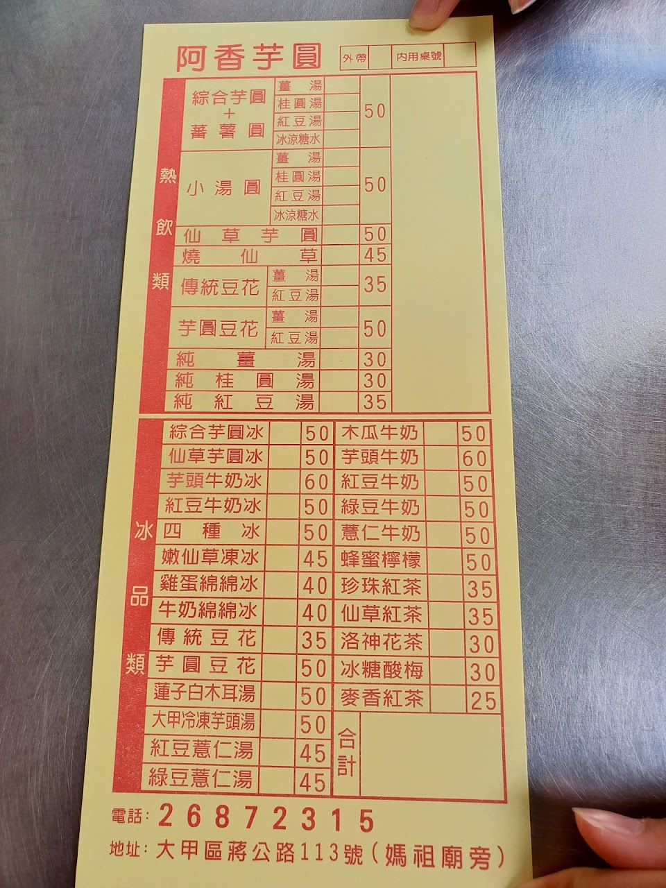 2024最新在地推薦餐廳的菜單_阿香芋圓的菜單、圖片