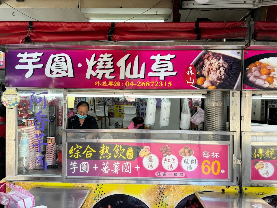 好吃的大甲美食,芋圓有薑湯、桂圓及紅豆湯可以選擇,豆花、燒仙草也不錯吃