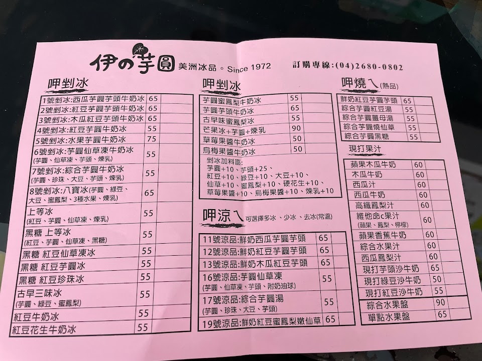 吃了快五十年了,從最早在蔣公路夜市美洲冰品,一直到現在文武路伊的芋圓,絕對是大甲冰品的領頭羊。