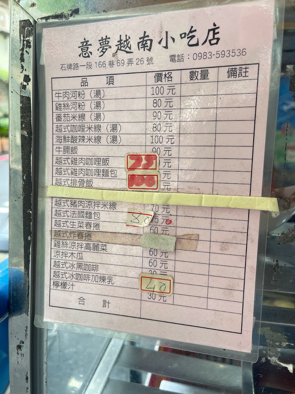 老闆娘大姐親切熱情,一個人忙東忙西的依然笑容可掬令人印象深刻,即使等餐時間稍為久一些些也絲毫不影響用餐的心情,這裡的牛肉河粉湯頭鮮甜感覺很清爽(雖然我不太懂越南口味)不過依我的台灣口味就是好吃阿,擠一點新鮮檸檬混和著九層塔的香氣很爽口,越式法國麵包一點點酸甜生菜麵包烤的酥香很喜歡!店面小小的位子不多,就在石牌捷運站2號出口附近,便宜好吃,生意已經很好了,很推,希望忙碌的老闆娘一直有美麗的心情。